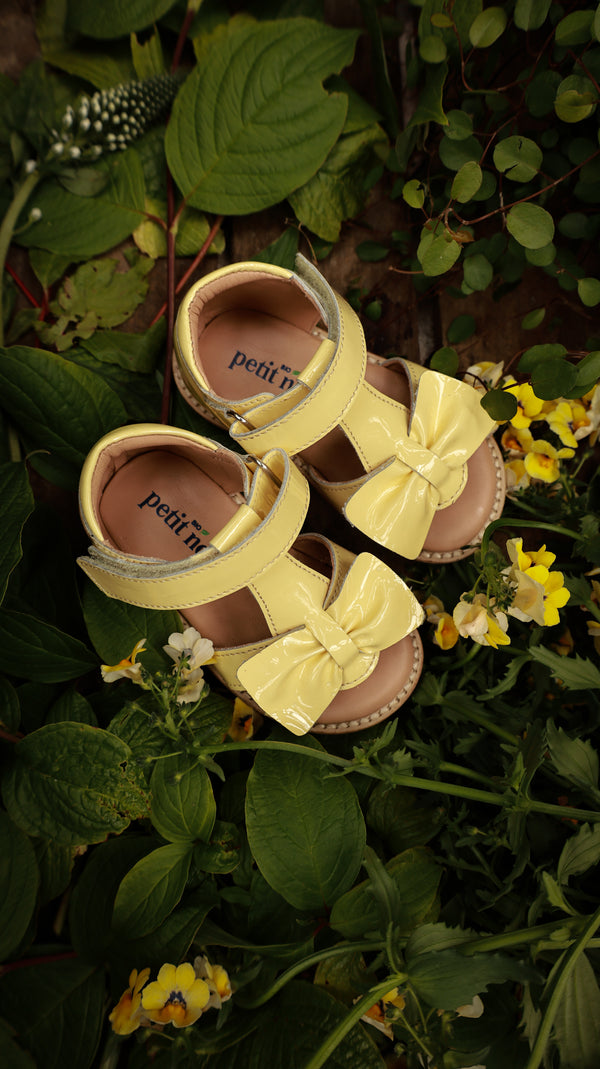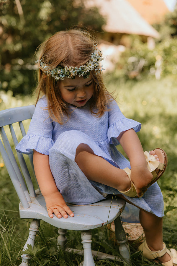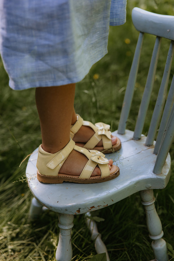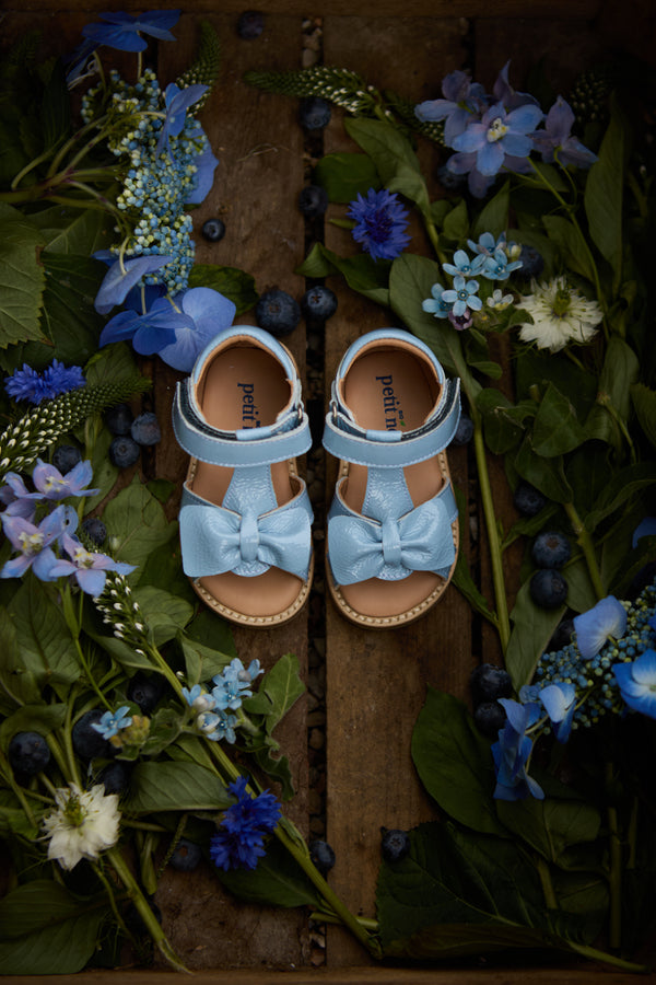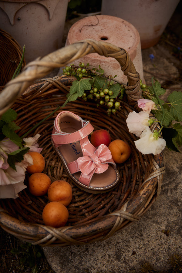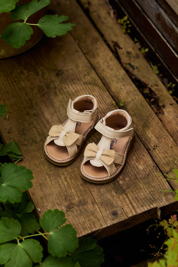 En sød ny style til de mindste fødder, der har brug for en ekstra fin sandal denne sæson. Girly-girltid med vores søde Gry sandal! Den håndformede sløjfe er en smuk finish til en fantastisk hverdagssandal. Den har en behagelig pasform, bygget på en ekstra fleksibel crepesål. Denne sko er håndlavet i læder med kromfrit foer. Alle sko er håndlavede i, 100% vegetabilsk garvede, 100% biologisk nedbrydelige og 100% kromfrie læder- og ruskindsmaterialer.