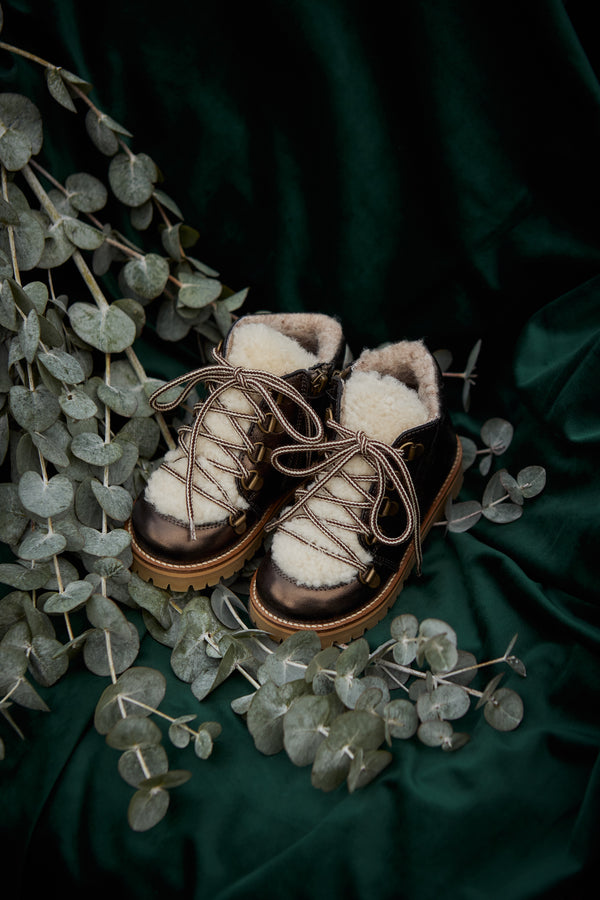 En favorit vinterstøvle prydet med frodig, naturlig fåreskind på støvlens tunge.