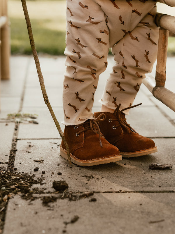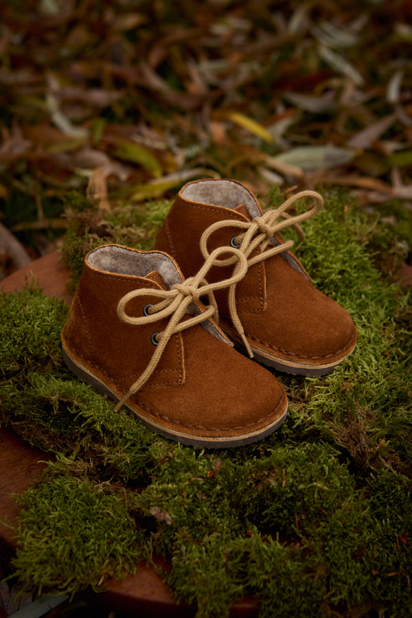 Vores vinterørkenstøvler er lavet i læder med 100% naturligt uld for, der holder små fødder varme gennem de koldere måneder. Sålerne er lavet af let genanvendt TR-gummi. Disse er ikke kun beregnet til de små, men også meget velegnet til ældre børn.