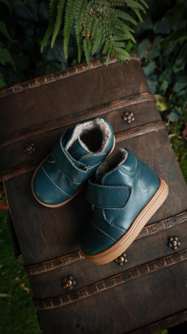 Vores foretrukne begynderstøvle fås nu som en TEX vinterstøvle med 100% naturlig uld foer, der holder små fødder varme og tørre gennem de koldeste måneder. Denne sko har en fast støtte og en perfekt pasform til normale fødder. Sålerne på de mindre størrelser er specielt designet til at være blødere og mere fleksible end de større størrelser. En velcro-rem sikrer let lukning, selv for de mindste hænder. Disse er lavet til at være barnets første sko, men er også populære hos de ældre børn.