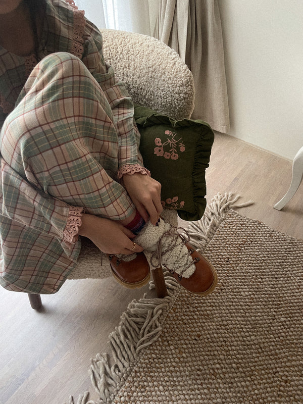Vores Bella Boots er designet til at give et statement, uanset hvor du går, og holder dine fødder behageligt varme i de kølige måneder. De er foret med en 100% naturlig uld. Sig farvel til kolde, fugtige fødder og hej til hyggelig komfort!